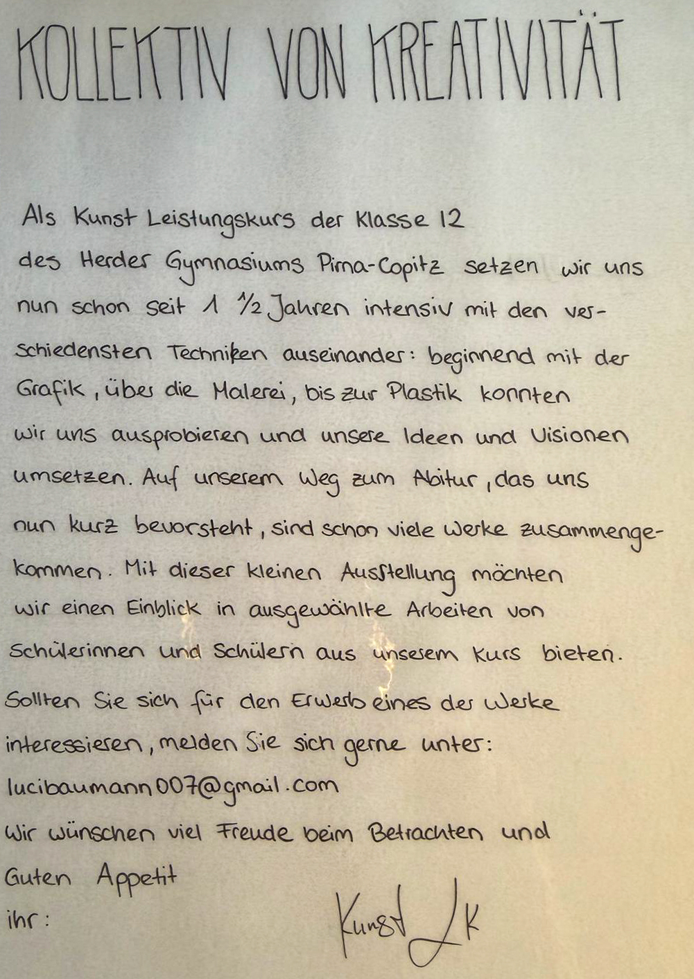 Kollektiv von Kreativität Hier sehen sie eine Galerie mit einigen der ausgestellten Arbeiten(zum Anhalten der Diashow bzw. zur Vergrösserung des Bildes klicken Sie bitte einfach ins Bild)